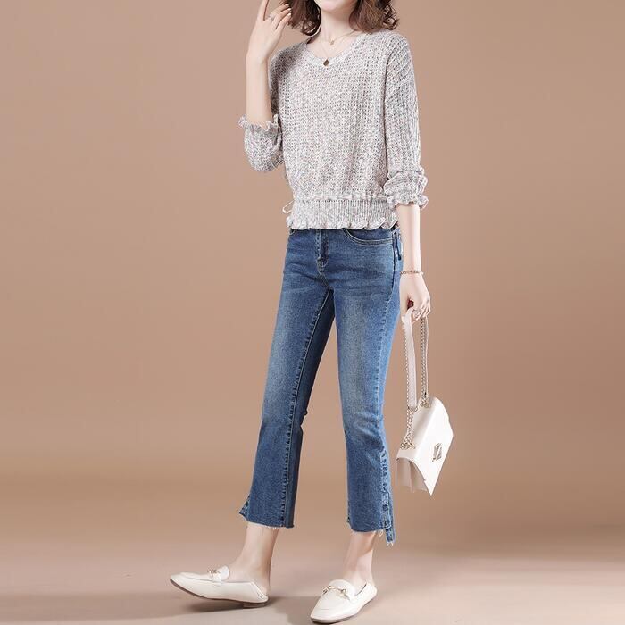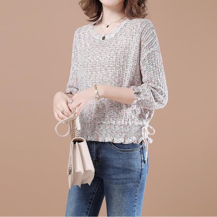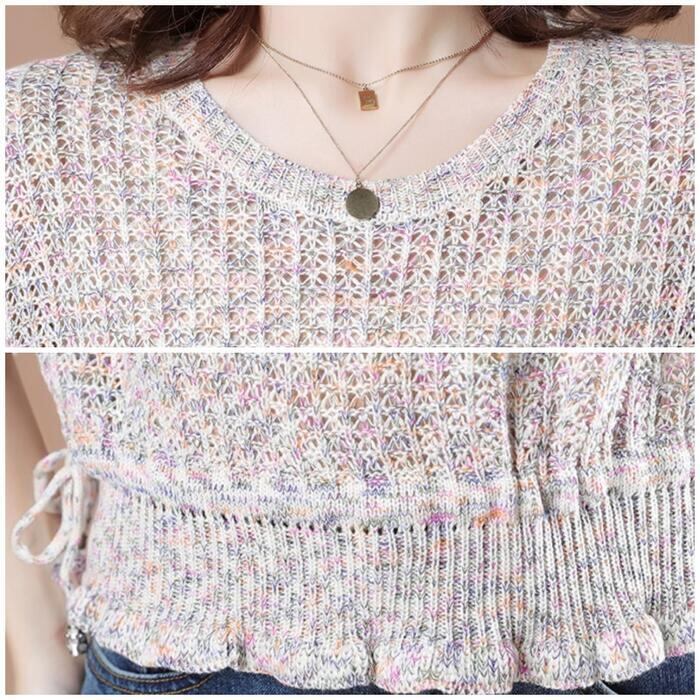 カラフルな色がミックスされたローゲージニットトップス。