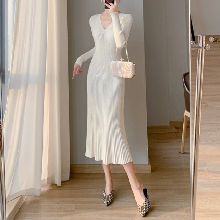 トレンドをおさえた、ボディコンシャスなシルエットのニットワンピース。