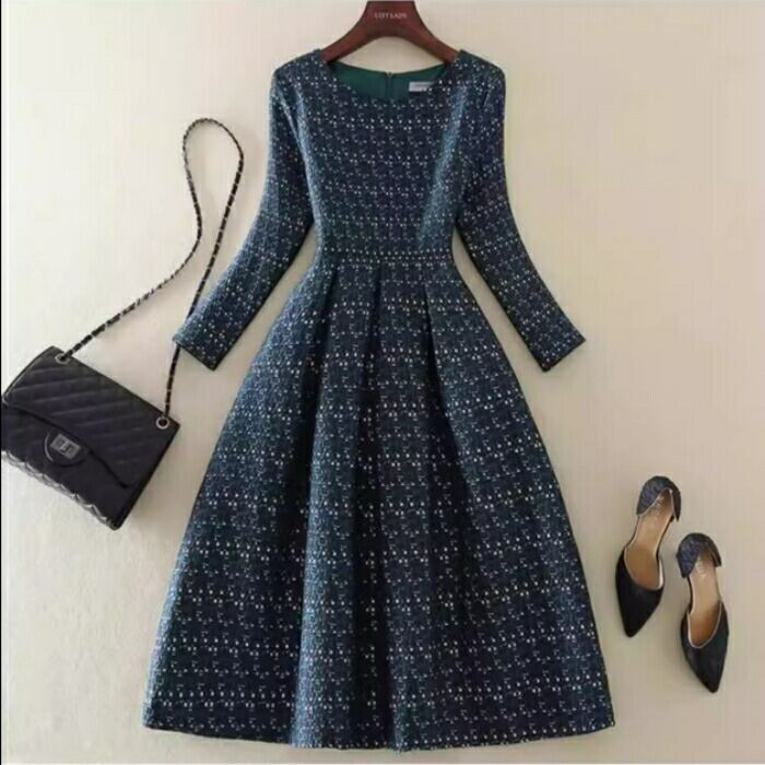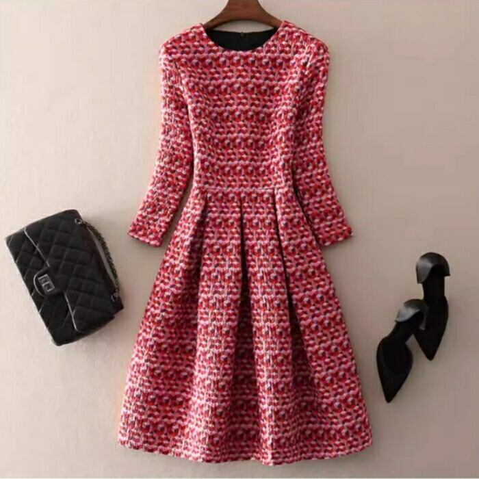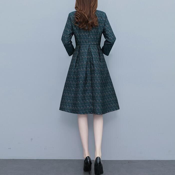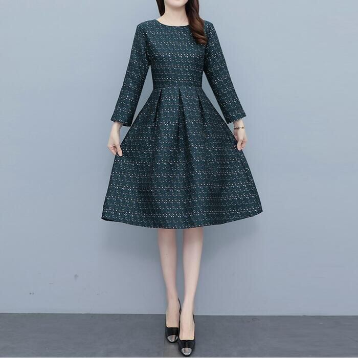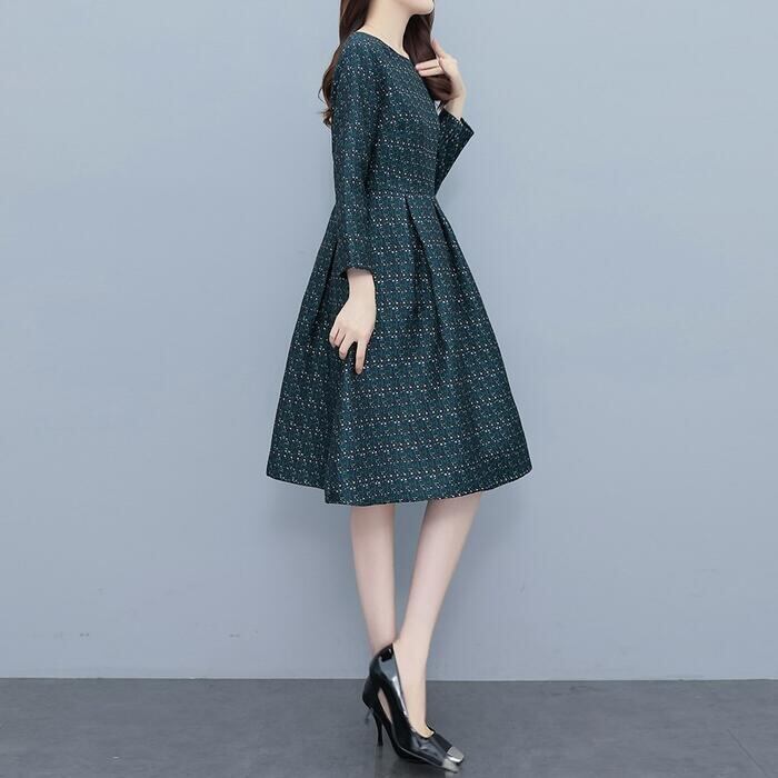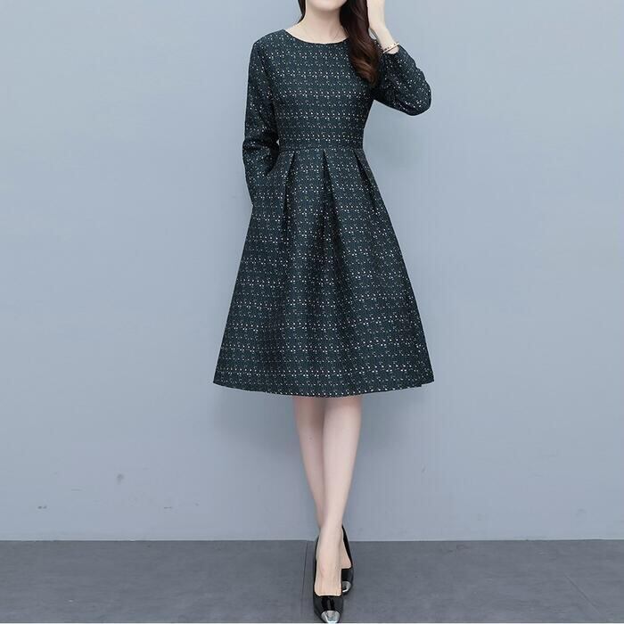 全2色 大きいサイズ 体型カバー ワンピース ワンピ ドレス 袖あり レディース エレガント きれいめ カジュアル 大人 可愛い フェミニン 長袖 フレア ひざ丈 Aライン お呼ばれ オケージョン ハイウエスト グリーン 緑 レッド 赤 春 秋 冬 20代 30代 40代 50代