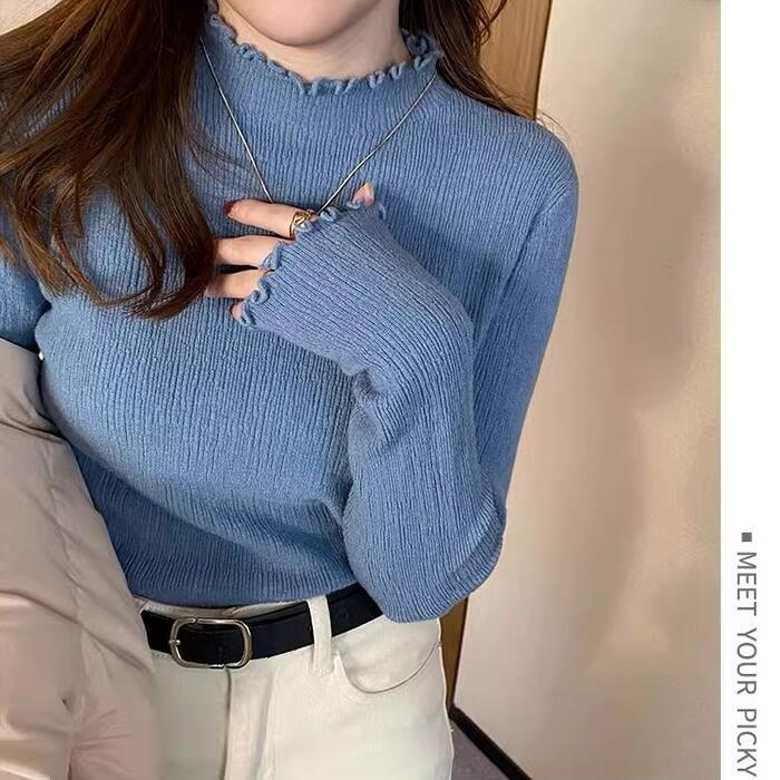 全9色 大きいサイズ 体型カバー シンプル きれいめ カジュアル フェミニン 大人 可愛い トップス ニット カットソー ハイネック タートルネック セーター インナー リブ ナロー エレガント レディース 長袖 オレンジ ブルー 青 イエロー ピンク グリーン 緑 ブラウン ベージュ ブラック 黒 ホワイト 白 春 秋 冬 20代 30代 40代 50代