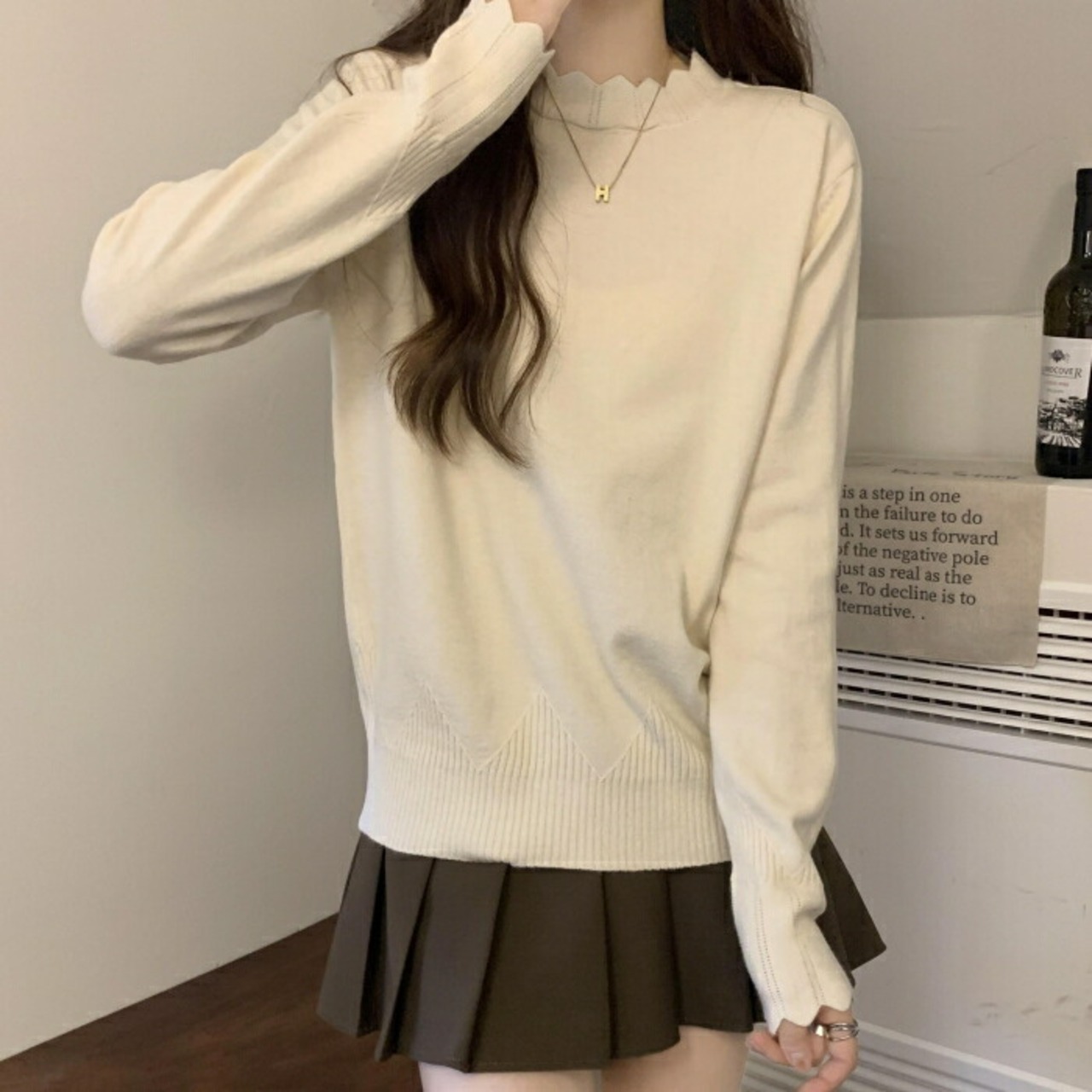 シンプルなデザインに、アウターインもしやすい肉感でデイリー使いにぴったり。