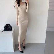 リブ編みが縦のラインを強調し、ボディラインを美しく見せてくれます。