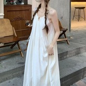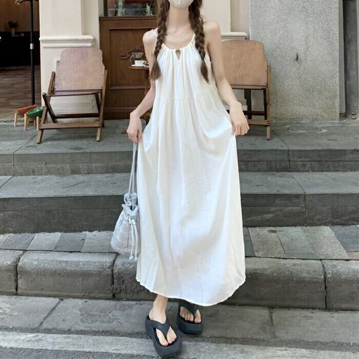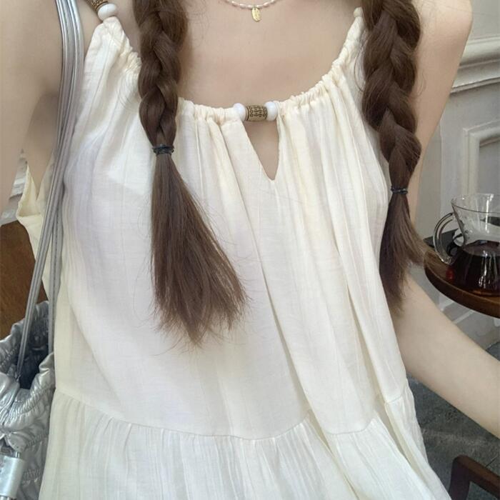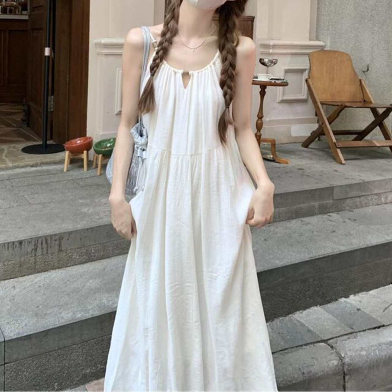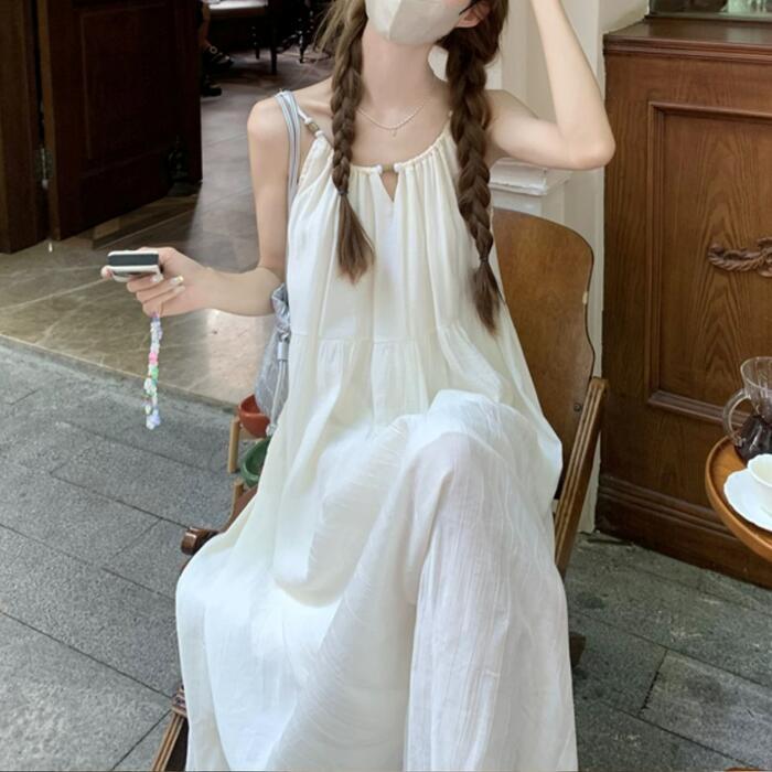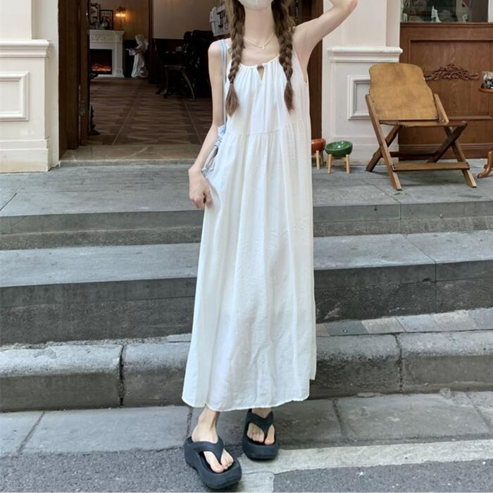 体型カバー ワンピース ワンピ ドレス キャミワンピ レディース エレガント きれいめ カジュアル 大人 可愛い フェミニン ノースリーブ ロング丈 シンプル リゾート ゆったり リラックス ナチュラル ベージュ 春 秋 夏 20代 30代 40代 50代