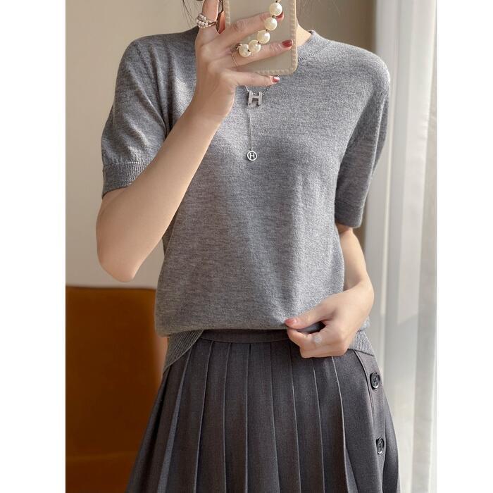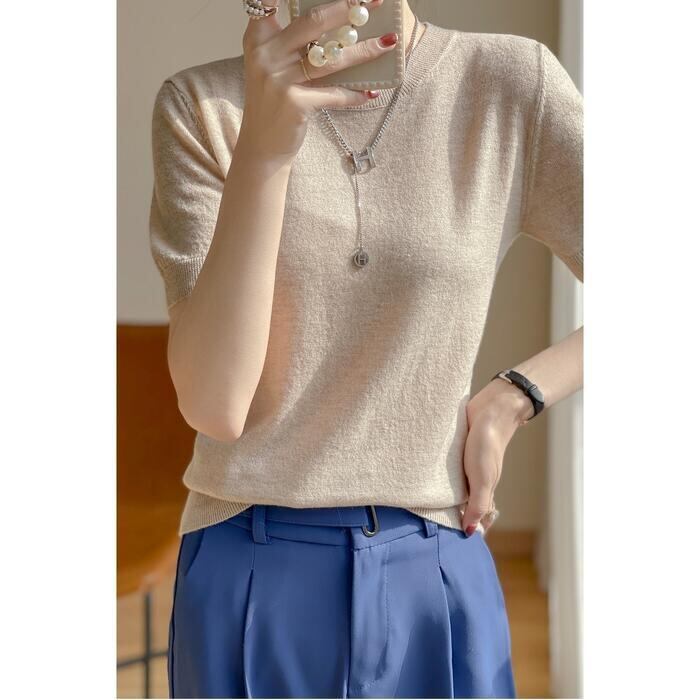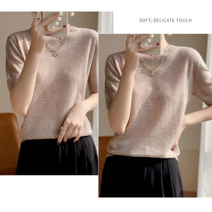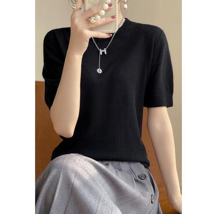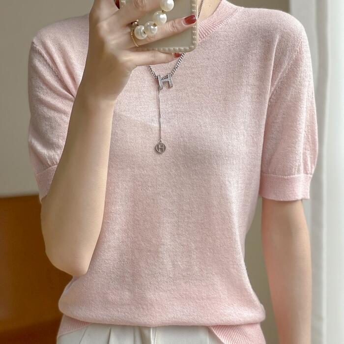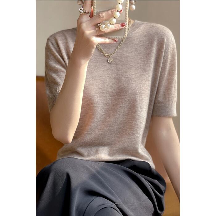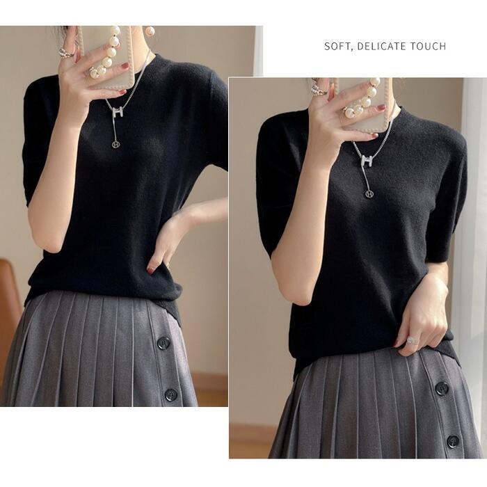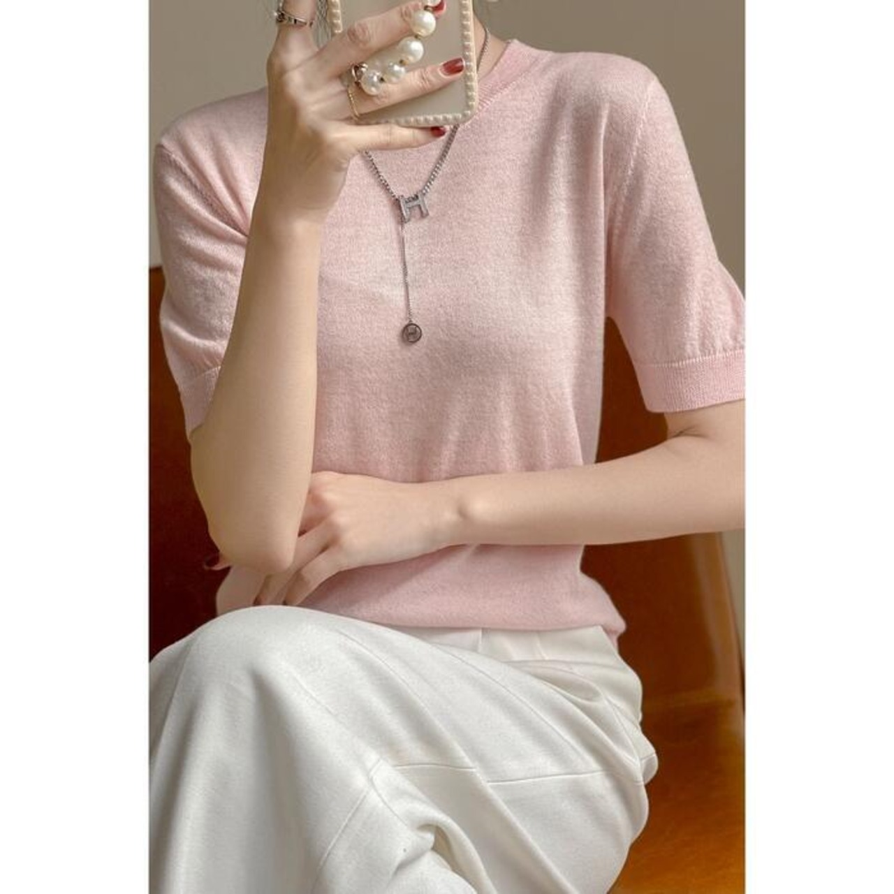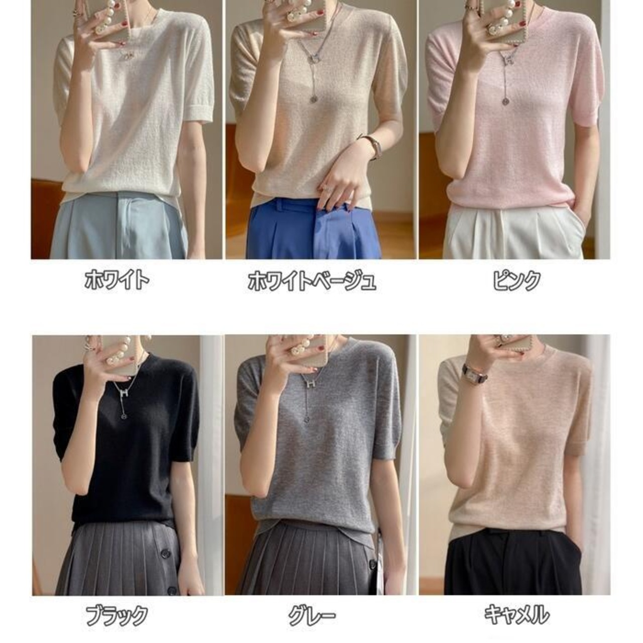 全6色 大きいサイズ 体型カバー サマーニット シンプル トップス Tシャツ カットソー ニット インナー プルオーバー エレガント レディース 大人 可愛い きれいめ カジュアル フェミニン クルーネック 半袖 ベーシック ホワイト 白 グレー ピンク ベージュ ブラック 黒 春 夏 秋 20代 30代 40代 50代