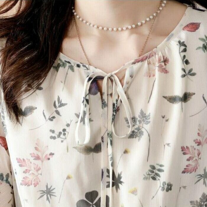 首元のリボンやフレアスリーブが女性らしさを漂わせます。
