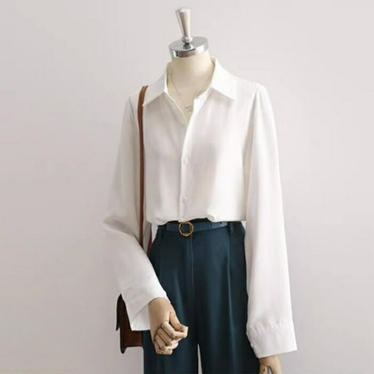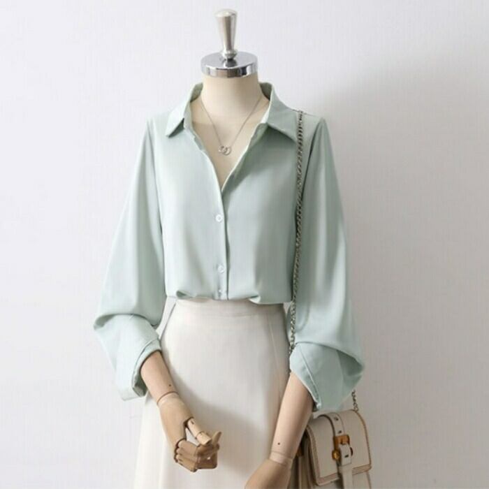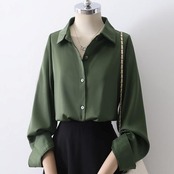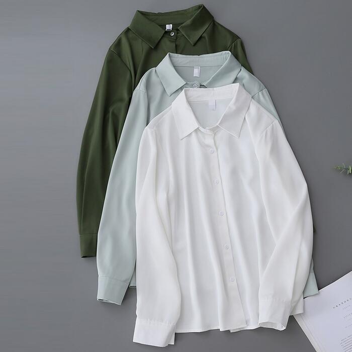 全3色 大きいサイズ トップス シャツ ブラウス サテン エレガント レディース 大人 可愛い きれいめ カジュアル フェミニン 長袖 シンプル ベーシック 体型カバー 通勤 オフィス ゆったり グリーン 緑 ホワイト 白 春 秋 冬 20代 30代 40代 50代
