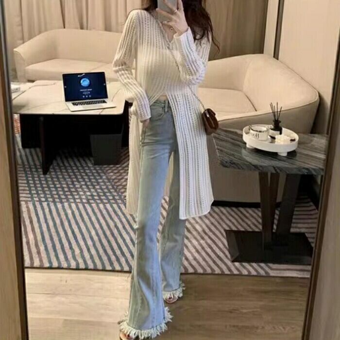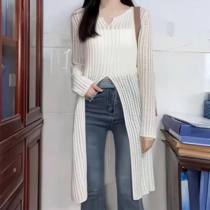 大きいサイズ 体型カバー シンプル ワンピース ワンピ ドレス ニット トップス カットソー チュニック スリット 透かし編み 透け感 レディース エレガント きれいめ カジュアル 大人 可愛い フェミニン ひざ丈 長袖 レイヤード スリム ホワイト 春 夏 秋 冬 20代 30代 40代 50代
