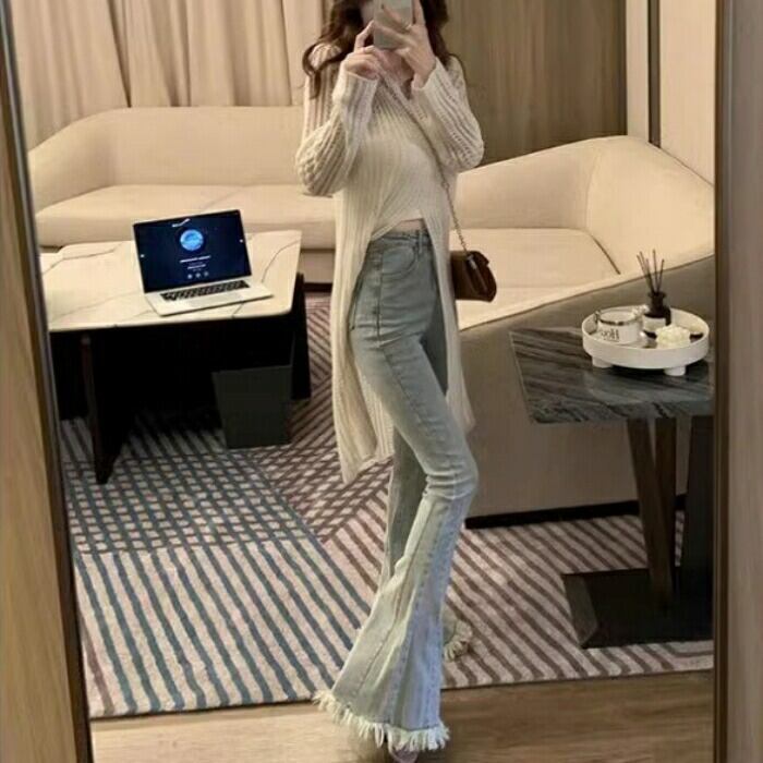 大人の洒落感が漂うスリット入りニットワンピース。