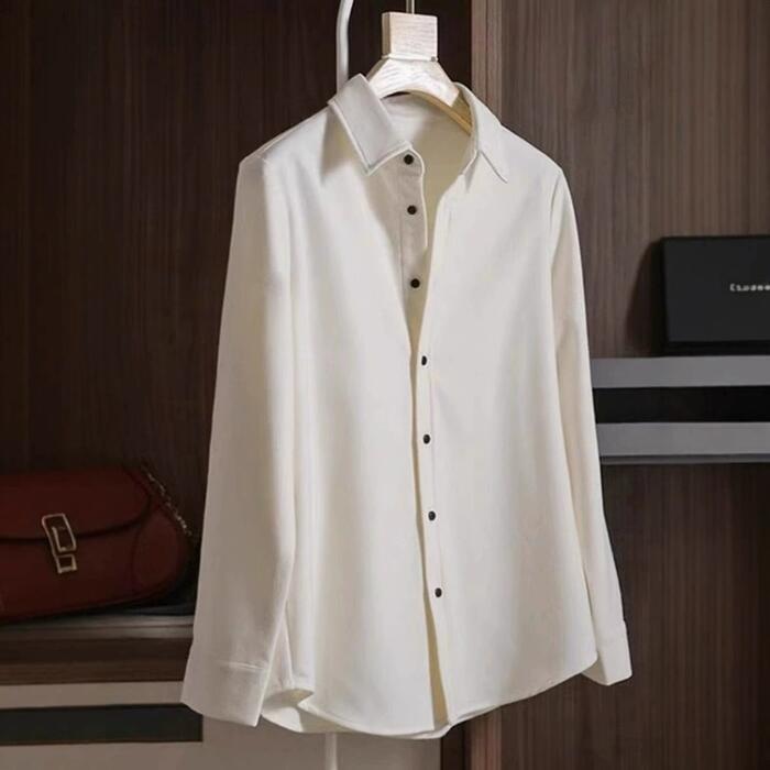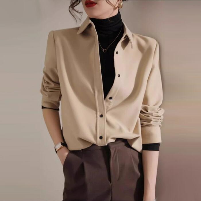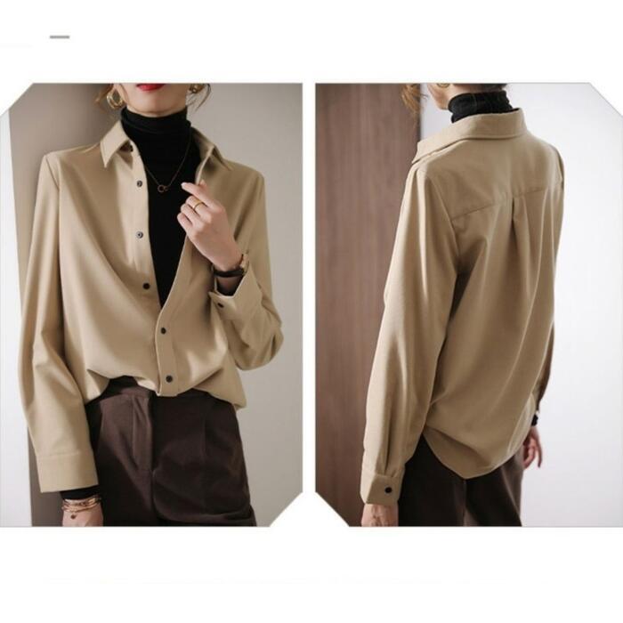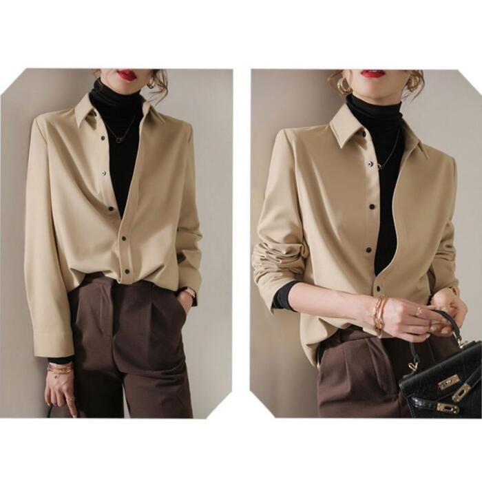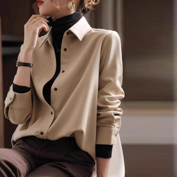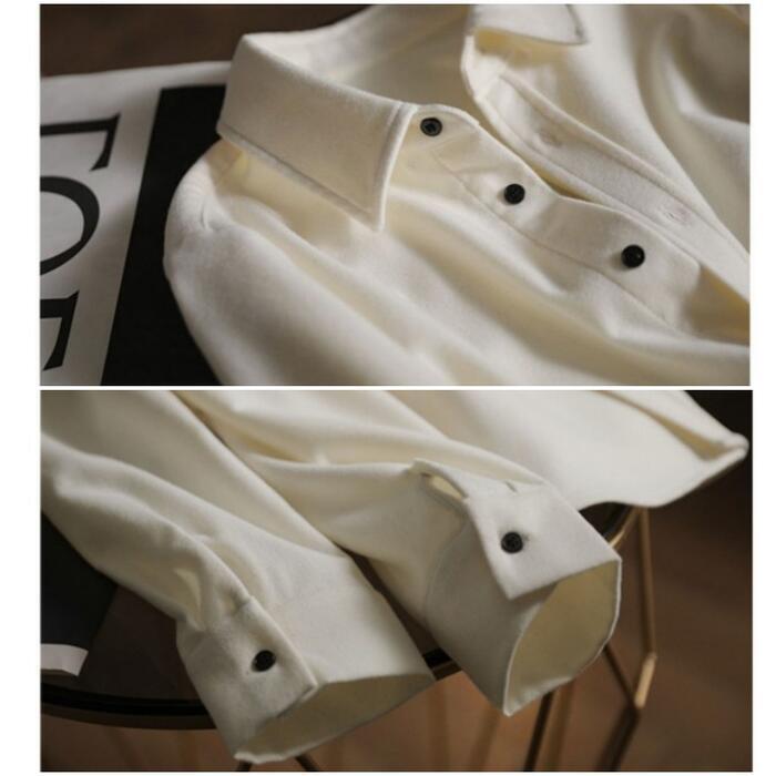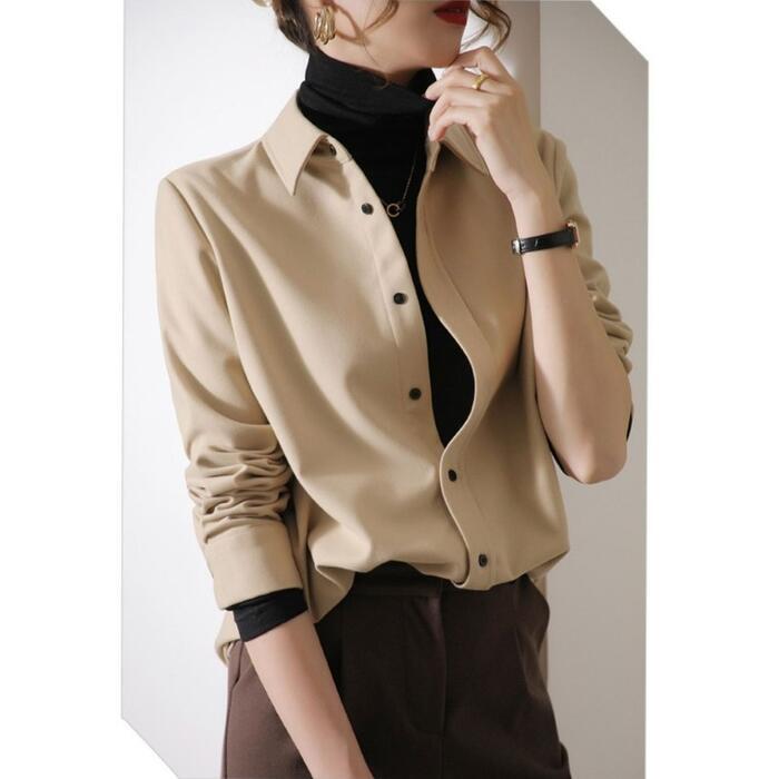 全2色 大きいサイズ 体型カバー トップス シャツ ブラウス 羽織り エレガント レディース 大人 可愛い きれいめ カジュアル フェミニン 長袖 ナチュラル シンプル ベーシック 無地 通勤 オフィス おしゃれ ベージュ ホワイト 白 春 秋 冬 20代 30代 40代 50代