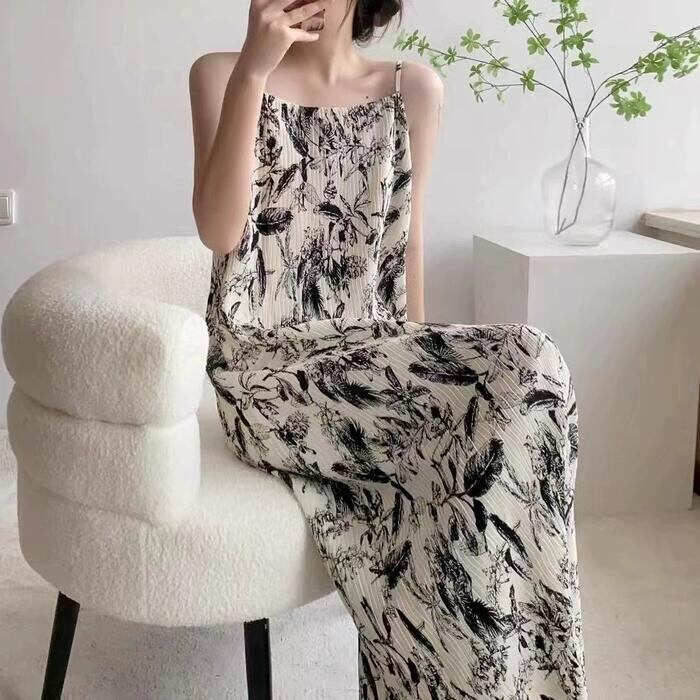大きいサイズ 体型カバー ワンピース ワンピ ドレス ボタニカル キャミワンピ レディース エレガント きれいめ カジュアル 大人 可愛い フェミニン ノースリーブ シワ加工 プリーツ ミモレ丈 Aライン 上品 リゾート ナチュラル ホワイト 白 春 秋 夏 20代 30代 40代 50代